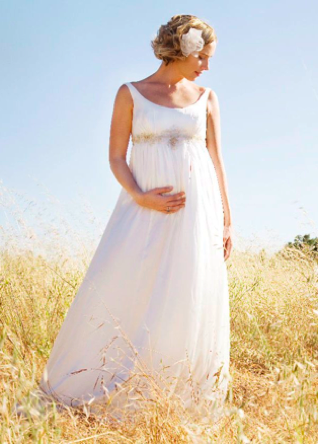 Существуют специальные платья для беременных. Ничто не может омрачить праздник, а фигура, которая изменилась - не повод отказываться от хорошего платья. Невестам на любом сроке беременности отлично подходят платья в стиле «Ампир».